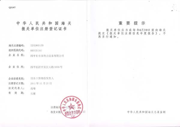 海关报关单元注册挂号证书