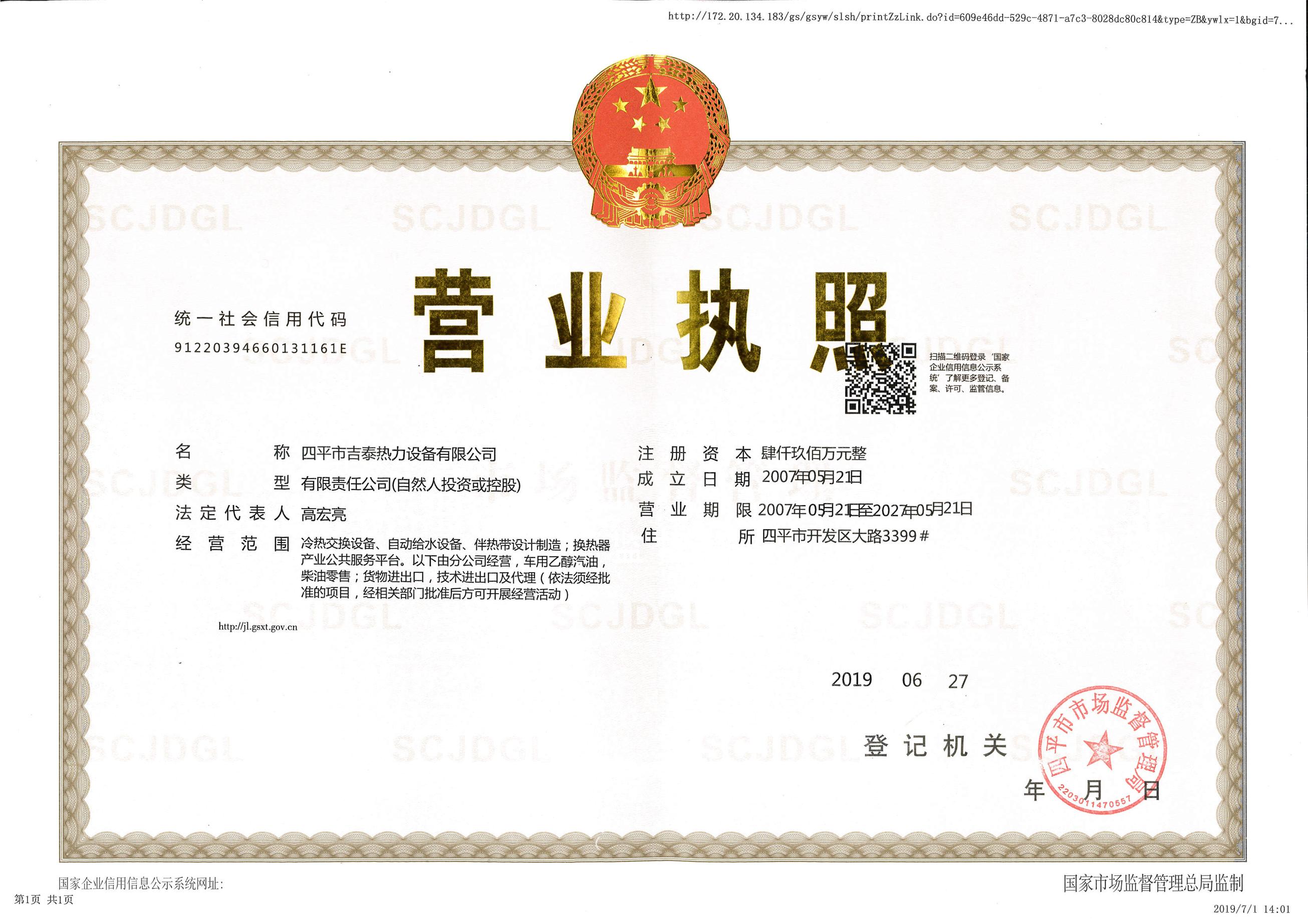 四平市吉泰热力装备无限公司—危